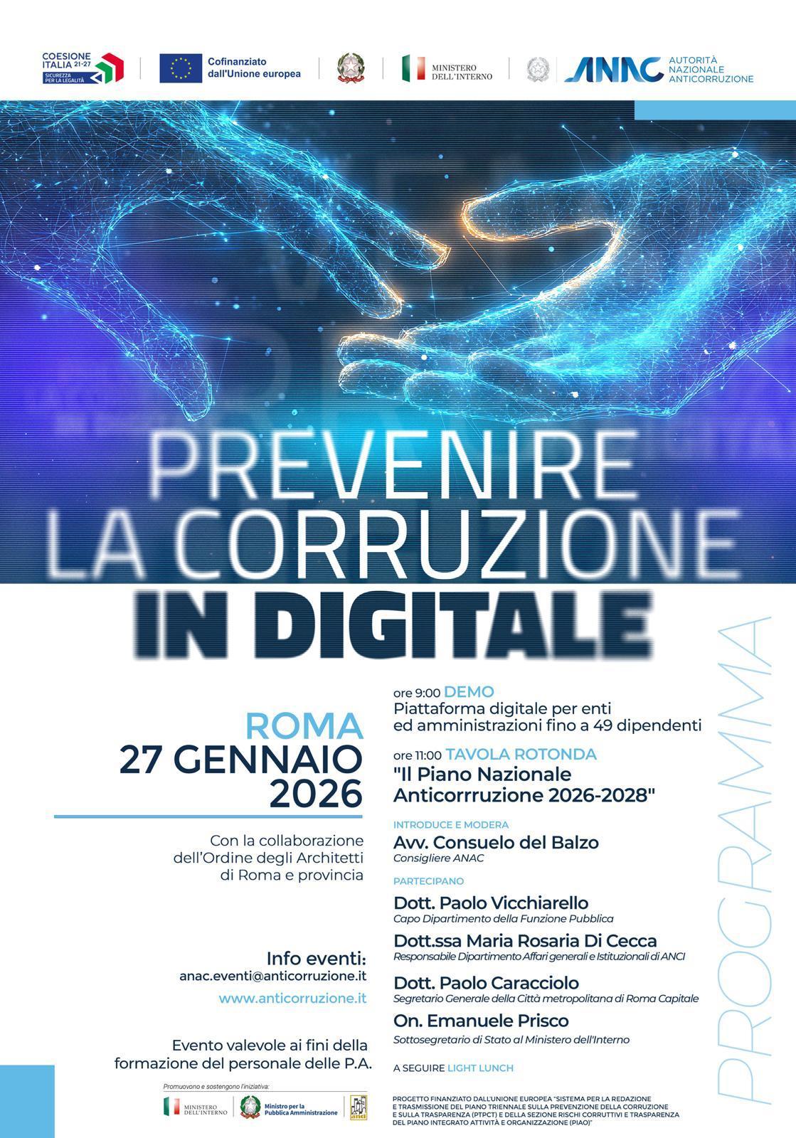 Informativa n. 15-2026 - Anticorruzione e trasparenza – Piattaforma digitale ANAC a disposizione gratuitamente per semplificare e supportare le Amministrazioni nella redazione e compilazione Piano Triennale di Prevenzione della Corruzione e Trasparenza